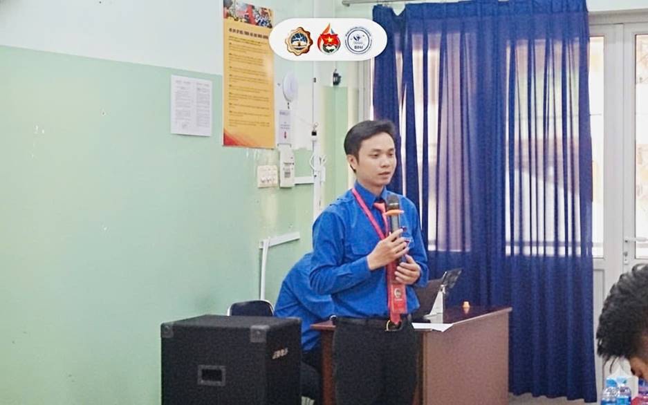 Đ/c Lê Ngọc Phương – Bí thư Đoàn Viện báo cáo tổng kết hoạt động Đoàn năm học 2024-2025